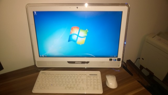 Sistem PC All-in-One MSI AE2220, diagonala display 21.5" rezolutie Full-HD (1920x1080) Touchscreen multi-touch, procesor Intel Core 2 Duo T6600 2.2Ghz, HDD 640GB 7200rpm, 4GB RAM, licenta Windows 7 Home Premium original, placa video NVIDIA GeForce 9300, DVD-RW, boxe 2 x 5W 5.1 canale, retea gigabit si wireless 802.11 b/g/n, 6 porturi USB, card reader, port eSATA, webcam 1.3MP, conectori HDMI, VGA, casti/microfon