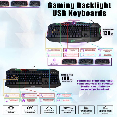 Tastatura iluminata cu un design si marime standard, picioruse de reglare pe inaltime