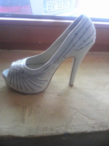 Pantofi de cununie, albi cu pietricele, purtati o data, nr 38,pret 150 ron negociabil