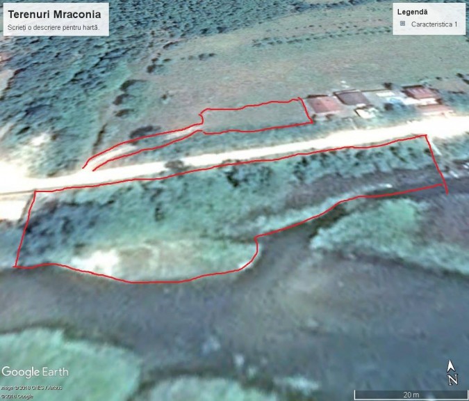 Terenul are o deschidere de 100 m la drum si apa si are o latime de aproximativ 10m. Se afla la imbinarea golfului Mraconia cu raul Mraconia. Zona este linistita si curata. Utilitatiile sunt relativ aproape, stalpii de curent fiind pe teren. Pretul terenului de 748mp este de 15000 euro iar cel de 1027 mp este de 30000 euro. Pentru achizitia ambelor terenuri se poate negocia pretul final.
