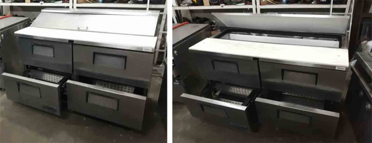 Banc inox frigorific pizza second compus din: masa frigorifica de lucru cu 4 sertare pentru GN 1/1 Spatiu frigorific pt. gastronoame ingrediente,