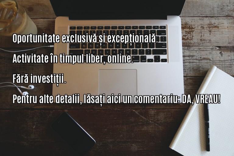 Job online de acasa, castiguri foarte motivante. Pentru persoane ambitioase, lejer din fata calculatorului in timpul liber, Instruire serioasa de foarte buna calitate, recomandat persoanelor cu varsta de peste 18 ani. Cunostinte minime de operare pe calculator. Pentru mai multe informatii, contactati e-mail: wolf_nanni@yahoo.com, text: DETALII