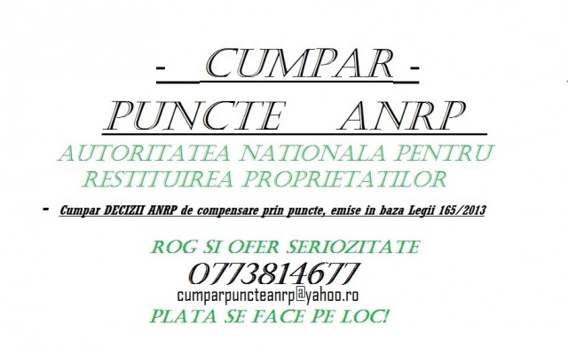 Cumpar DECIZII ANRP de compensare prin puncte, emise in baza Legii 165/2013. Plata se face pe loc. Rog seriozitate.