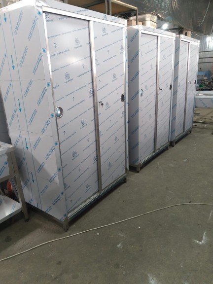 Dulapuri inox, cu 3 polite fixe, picioare reglabile, usi culisante, dimens. 100x90x100 cm-Pret-2900 lei+tva=3451 lei