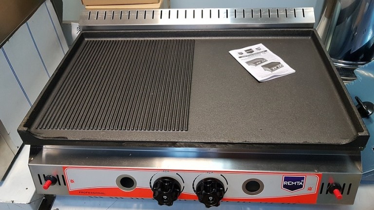 Gratar cu placa 1/2 neteda 1/2 striata de banc, capacitate 1200 m, putere 14 kW, energie 20 mbar; greutate 30 kg,