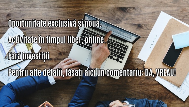Cautam urgent operatori pe internet. Castigurile sunt foarte motivante. Lucrati acasa la dvs, la calculator, in timpul liber. Asiguram instruire gratuita si de cea mai buna calitate. Trebuie sa aveti varsta de 18 ani si cunostinte minime de navigare pe internet. Pentru detalii, contactati-ne pe e-mail: wolf_nanni@yahoo.com, text: INFORMATIE