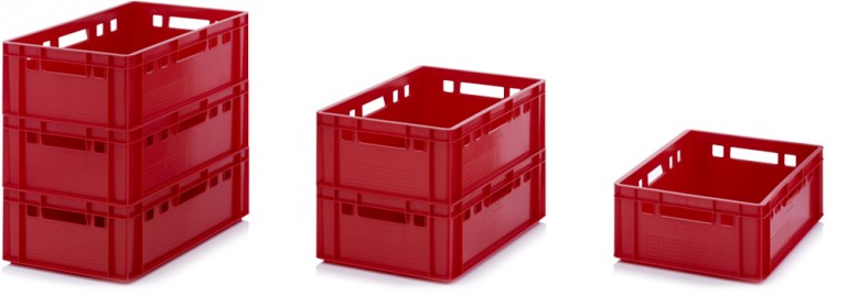 Cutia pentru carne realizata de catre AUER Packaging a fost conceputa special pentru utilizarea in industria carnii si respecta cerintele stricte definite prin EHI. Euro lada E2 evacueaza apa de la margine catre exterior si asigura in acest mod conditii optime de depozitare si transport pentru produsele din carne.