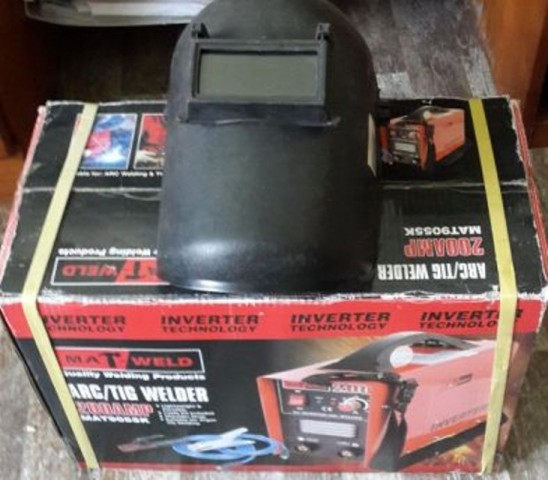 Include toate accesoriile: ciocan, manusi, sort, masca, electrozi