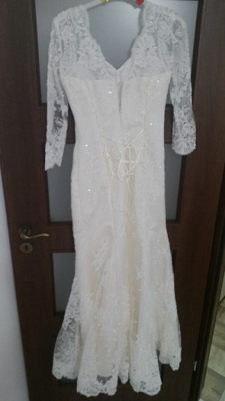 Vand rochie de mireasa model sirena. Marimea este 42.Culoare este ivory. Rochia a fost purtata o singura data. A fost dusa la curatatorie si arata impecabil.inaltimea mea este 1,55.are in componenta o crinolina.