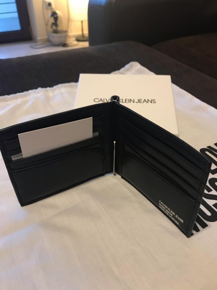 Vand portofel negru Calvin Klein original, de barbati, confectionata din piele naturala de foarte buna calitate, realizat prin cusatura dubla.